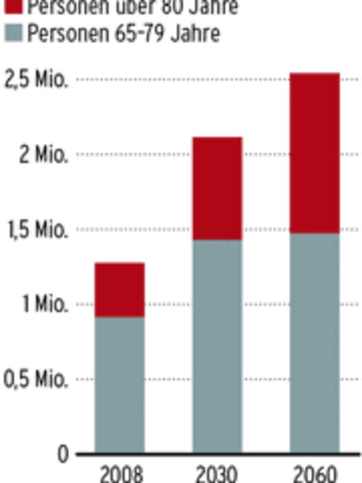 Prognose über die Zunahme der pflegebedürftigen Personen, die 65 Jahre und älter sind