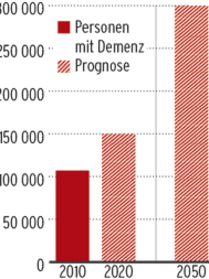 Vielleicht ist das Bielefelder Modell die Antwort auf eine der grössten Herausforderungen unserer Zeit: Wie umgehen mit Demenz? Heute leiden 107'000 Menschen in der Schweiz an dieser Krankheit, bei der das Gehirn allmählich verfällt – und damit auch das Gedächtnis, die Sprache, der Orientierungssinn. Bis ins Jahr 2050 wird sich die Zahl der Demenzkranken verdreifachen (siehe Grafik weiter unten). Zugleich wird es immer weniger pflegende Angehörige geben. Weil immer mehr Frauen berufstätig sind. Weil Kinder und Eltern oft nicht mehr am selben Ort leben.