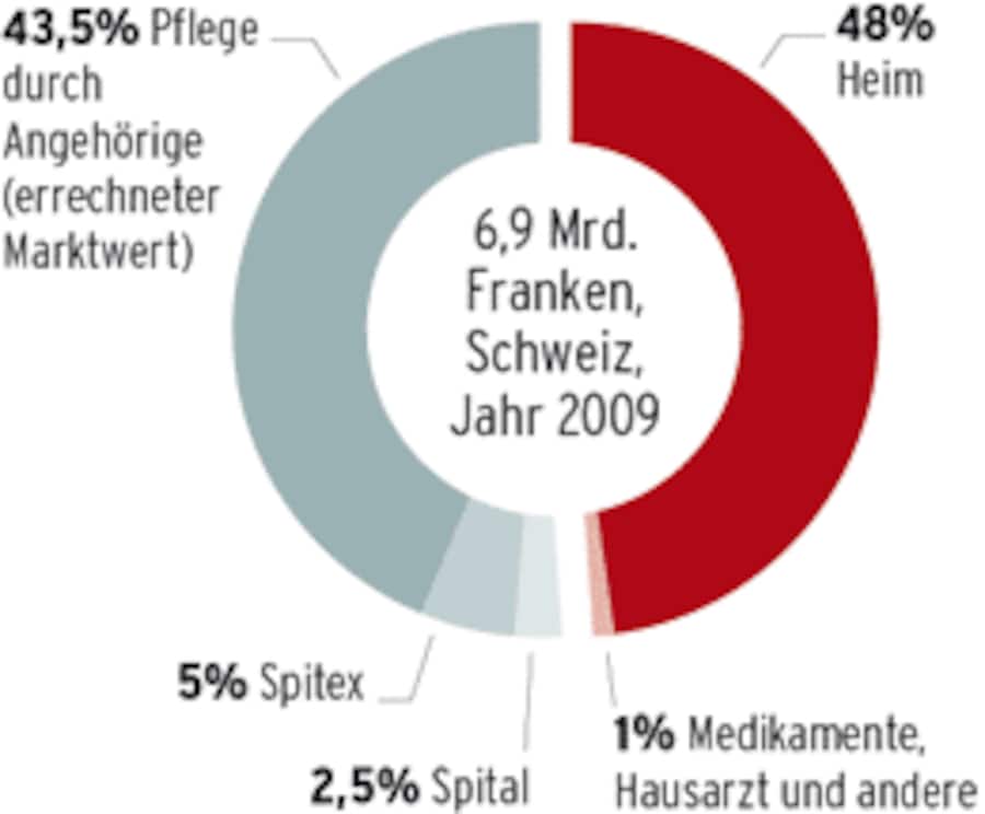 6,9 Mrd. Franken betragen die jährlichen Gesundheitskosten in der Schweiz infolge Demenzerkrankungen. Mit eingerechnet ist der Marktwert unentgeltlicher Pflege und Betreuung.