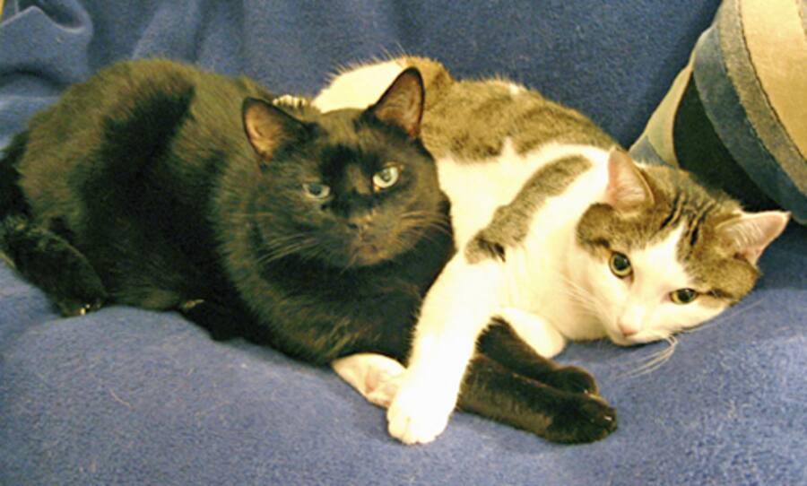 Meine beiden ersten Kater Sahib und Omar waren einst wie Brüder und Zeit ihres Lebens unzertrennlich. Nun sind sie beide tot – und es würde mich nicht wundern, wenn sie wie die beiden Opas Waldorf und Statler aus der Muppet-Show gerade im Katzenhimmel kichernd zusammen auf einem Wölkchen sitzen. Eins haben sie mir jedenfalls bewiesen: Katzen haben Humor. Schwarzen Humor.
