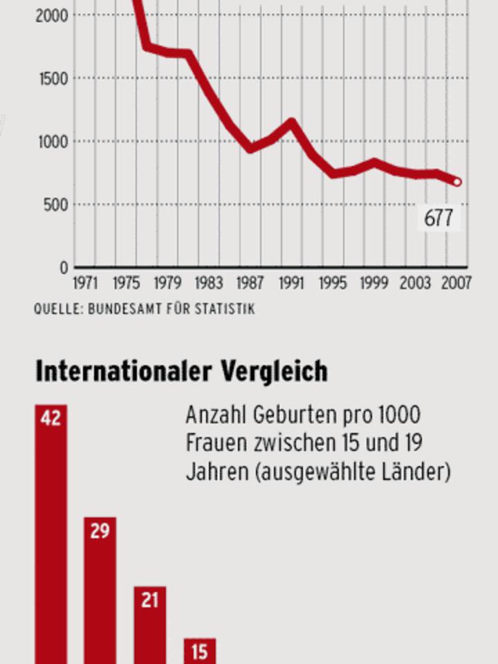 Die Zahl der Teenager-Schwangerschaften ist in der Schweiz im internationalen Vergleich tief und seit Jahren in etwa konstant – um die 50 Frauen unter 16 Jahren gebären im Schnitt pro Jahr. Knapp 700 Neugeborene jährlich sind von Frauen im Alter zwischen 15 und 19 Jahren (siehe «Teenager als Mütter»). Auch bei den Schwangerschaftsabbrüchen ist kein Trend nach oben festzustellen; laut Bundesamt für Statistik treiben jährlich 5 von 1000 Jugendlichen unter 19 Jahren ab.