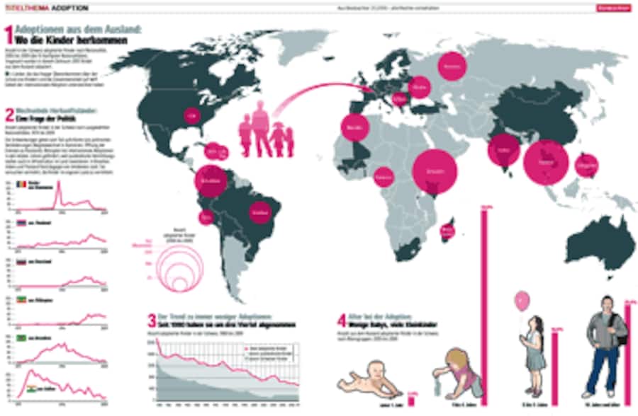 Zäh sein, das gilt auch heute noch. Adoptionswillige erwartet eine Flut von Formalitäten und eine bisweilen schwer erträgliche Begutachtung. Auszüge aus dem Straf- und dem Betreibungsregister müssen vorgelegt werden, Steuererklärung, Lohnausweis, Heiratsurkunde und vieles mehr. Beide potentiellen Eltern müssen einen ausführlichen Lebensbericht verfassen, worin sie ihre eigene Kindheit schildern und ihren Kinderwunsch begründen. Letzte Entscheidungsgrundlage bildet ein Sozialbericht, der nach mehreren Gesprächen mit der Sozialbehörde verfasst wird. Bis das Kind endlich da ist, verstreichen locker zwei bis drei Jahre, und der Kontostand ist um 10'000 bis 30'000 Franken gesunken.