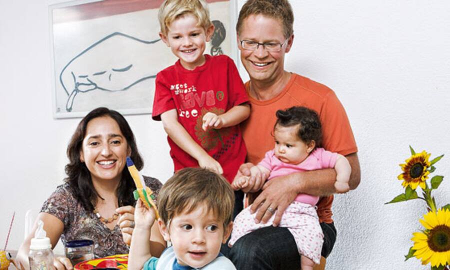 Alejandra Navarro Gallo, Mexiko, 38, Juristin, seit zehn Jahren in der Schweiz, mit Andreas Eigenmann, 42, Kommunikationsberater, Nicolás, 5, Manuel, 2, und Isabella, 6 Monate