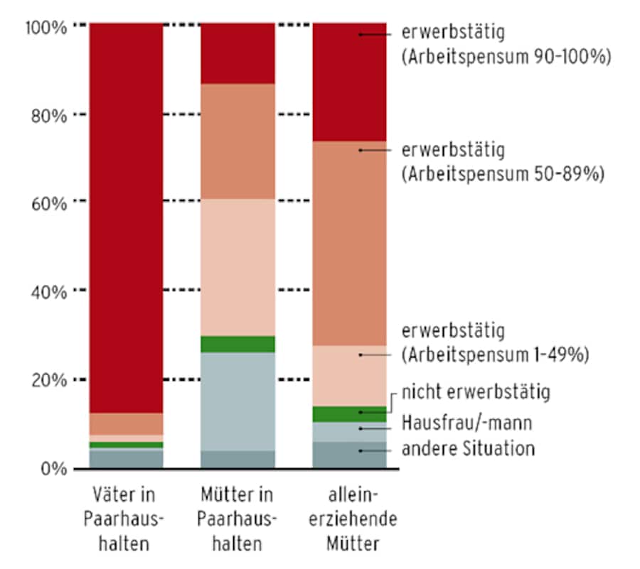 «Wir sind in der Schweiz noch weit davon entfernt, atypische Familienmodelle zu akzeptieren», sagt Thomas Huber-Winter von der Fachstelle UND, dem Kompetenzzentrum für die Vereinbarkeit von Familien- und Erwerbsarbeit. Kein Wunder, wagten bislang nur wenige Familien den Rollentausch. Und wenig erstaunlich sei, dass nur gerade jeder zehnte Mann einen Teilzeitjob habe, und nur ein kleiner Teil davon aus familiären Gründen. Was es braucht, liegt für Huber-Winter auf der Hand: Betriebe sollten ausserberufliche Kompetenzen würdigen, flexible Arbeitszeiten bieten. Und Vaterschaftsurlaube müssten vom Staat geregelt und mitfinanziert werden. Heute sind sie vom Goodwill der Arbeitgeber abhängig und können je nach Betrieb von zwei Tagen bis zu vier Wochen dauern. Kurzum: «Die Rahmenbedingungen müssen noch wesentlich kinder- und familienfreundlicher werden.»