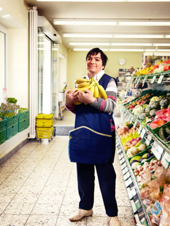 Also steht Marlene Kaspar um 7.30 Uhr in blauer Schürze vor dem Regal, blickt auf das Joghurt in ihrer Hand und ruft: «Achtzehnter Vierter.» Der nächste Becher: «Fünfzehnter Vierter.» Ihre tragende Stimme klingt durch das kleine Ladenlokal. Sie soll all jene Produkte mit einem Rabattkleber versehen, die kurz vor dem Ablaufdatum sind. Verunsichert sieht sie ihren Begleiter an: «Muss ich hier einen Kleber draufmachen?» Geschäftsführer Josef Bucher würde grundsätzlich jederzeit auch jemanden mit Behinderung einstellen, wie er sagt. Voraussetzung sei aber, «dass in dem Laden genügend personelle Kapazität für die Betreuung vorhanden ist und die grosse Stammkundschaft, die wir haben, die Situation auch akzeptiert». Das müsse man von Fall zu Fall klären.