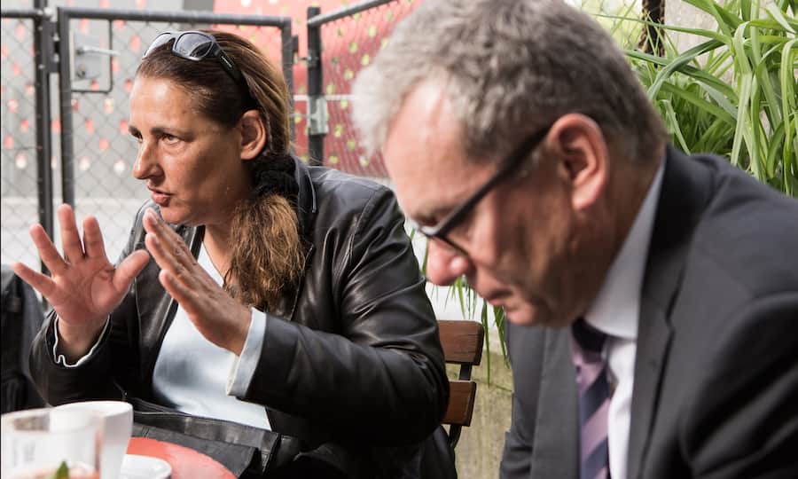 Ruedi Noser lauscht den Argumenten von Jacqueline Badran – beide kämpfen engagiert für ihre Position.