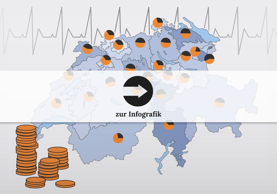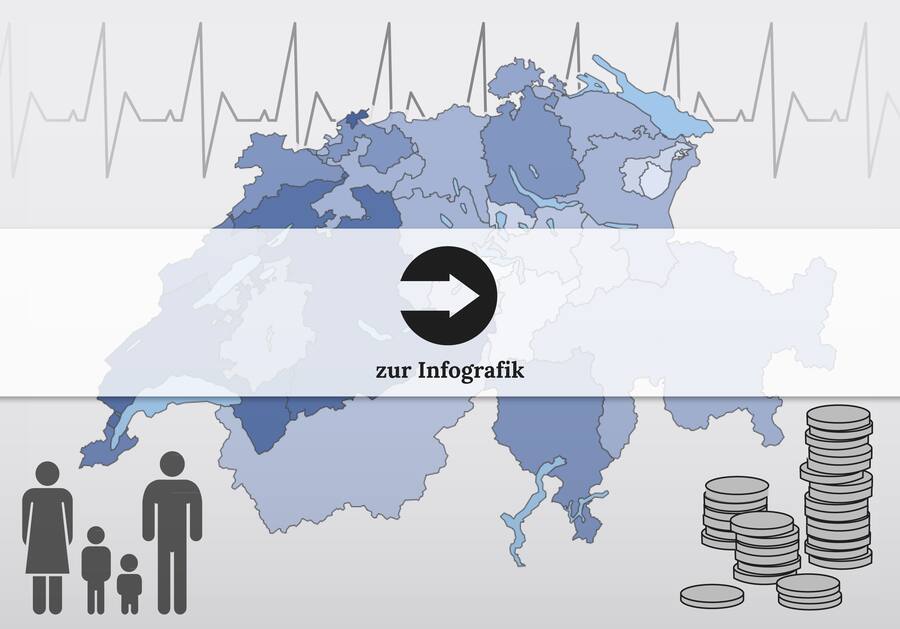 Finden Sie mit einem Klick auf die Infografik heraus, wie gross die kantonalen Unterschiede bei der Bezügerquote und in der Höhe der Prämienverbilligung sind.