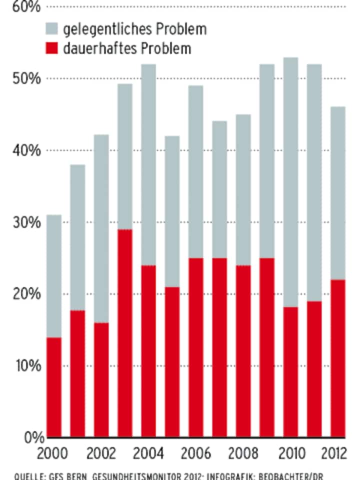 Anteil der Stimmberechtigten, die Probleme haben, ihre Prämien zu zahlen. Im Jahr 2012 waren es 22 Prozent.