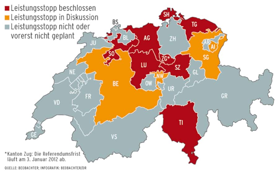 Obwohl die Neuerung bereits im Januar in Kraft tritt, ist nicht ganz klar, welche Kantone Leistungssperren für säumige Zahler einführen werden (siehe oben stehende Grafik). Der Kanton Thurgau tut es bereits seit vier Jahren. Luzern oder Schaffhausen folgen jetzt – obschon man längst nicht überall vom Nutzen dieser Massnahme überzeugt ist. «Ziel der schwarzen Listen ist es, Missbräuche aufzudecken», sagt Markus Schärrer, Leiter des Schaffhauser Gesundheitsamts. Er erzählt, dass verschiedene Fachleute aber bezweifeln, dass sich der Aufwand dafür rechnet. «Ich glaube nicht, dass die Zahl der effektiv verweigerten Behandlungen gross sein wird», sagt auch Schärrer. Andere Gesundheitsdirektionen äussern sich ebenfalls skeptisch. In St. Gallen etwa hat man inzwischen Bedenken, ob die Kosten für die nötige EDV-Infrastruktur in einem vernünftigen Verhältnis zum Ertrag stehen. Hinter vorgehaltener Hand sprechen die Gesundheitsdirektionen einiger Kantone deshalb von einem eigentlichen Rohrkrepierer.