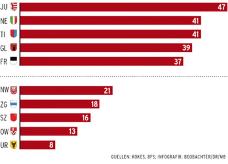Ob die Behörden überhaupt aktiv werden und wie professionell sie dabei vorgehen, ist letztlich stark von den beteiligten Personen und vom Wohnort abhängig. Die Unterschiede zwischen den Kantonen sind riesig. So gab es 2011 im Jura 47 laufende Kindesschutzmassnahmen pro 1000 Kinder, im Kanton Uri nur gerade acht Massnahmen pro 1000 Kinder. Das ist nicht logisch zu erklären, denn es dürfte überall in etwa gleich viele gefährdete Kinder geben – nur greifen die Behörden eben nicht immer ein. Vor allem in kleineren Gemeinden sind meist Laien zuständig. «Sie handeln nicht auf der Basis von Fachwissen, sondern aufgrund eigener Wertvorstellungen, manchmal zu schnell, manchmal zu langsam, manchmal gar nicht», sagt Familiencoach Arno Walti. Grundsätzlich sei es immer ein Spagat, zwischen dem Kindswohl und der Selbstbestimmung der Familie abzuwägen.
