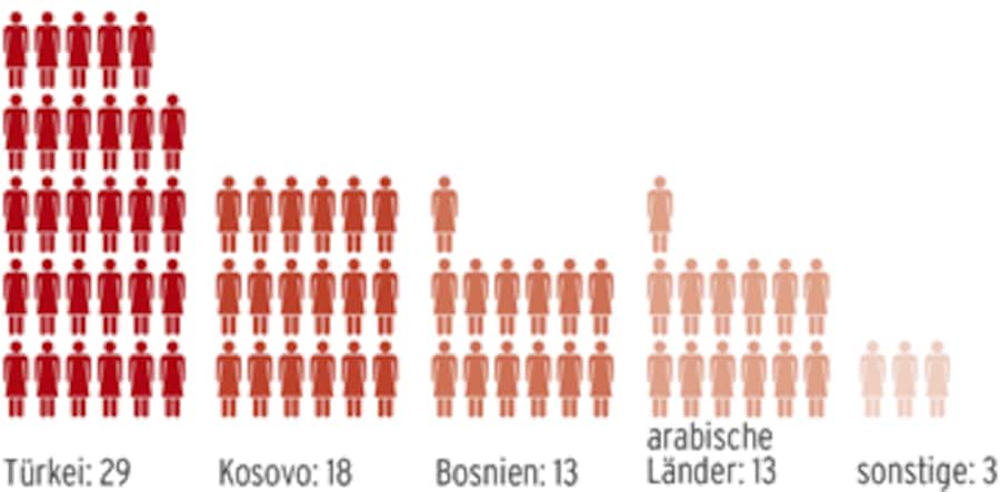 Mit dem Klischee der kopftuchtragenden Muslimin hat Bahar auf den ersten Blick nichts gemein. Die Kurdin trägt enge Röhrenjeans, eine dezent ausgeschnittene Bluse und Stiefeletten. Ihr langes schwarzes Haar trägt sie heute offen. Ein Lidstrich betont ihre mandelförmigen, dunklen Augen, etwas Lipgloss die vollen Lippen. Seit der Lehre arbeitet sie in einem Coiffeurgeschäft in der Innerschweiz.