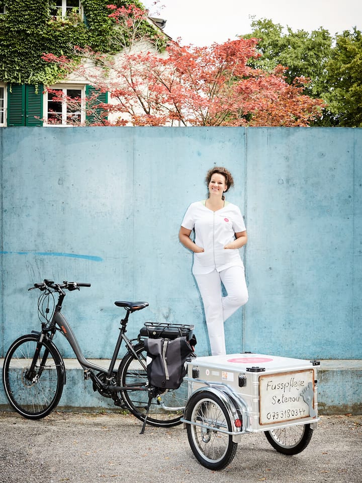 Lilian Setenou tut genau das – immer. Als Teenager verzichtete die 39-Jährige auf ein Auto, weil sie der Umwelt nicht schaden wollte. 20 Jahre später steht dieser Gedanke nicht mehr im Vordergrund, aber einen Führerschein hat Setenou immer noch nicht. «Ich komme mit dem Velo überall hin und bin lieber draussen als in einem geschlossenen Auto.» Dafür nimmt die mobile Fusspflegerin einiges in Kauf, denn natürlich muss sie auch bei Regen und Kälte zur Kundschaft. Alle Utensilien transportiert sie in einem gedeckten Anhänger. Da hilft es, dass sie sich unterdessen ein E-Bike angeschafft hat.