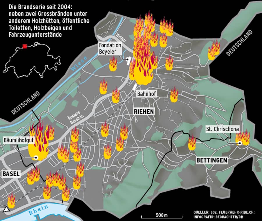 In Riehen BS geht seit Jahren ein Brandstifter um. Es ist eine der längsten ungeklärten Brandserien der Schweiz. Jeder verdächtigt jeden. Sogar in die Gemeinderatswahlen spielte das Feuer hinein.