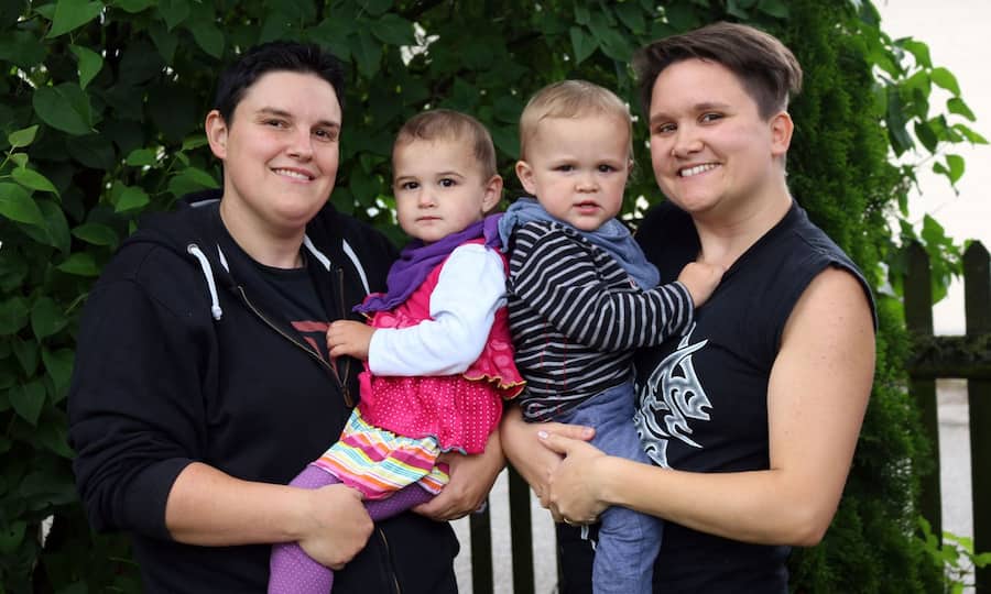 Melanie liebt Corinne. Seit sechs Jahren sind die 27-jährige Bibliothekarin und die 35-jährige Pflegefachfrau ein Paar. Vor drei Jahren haben sie ihre Partnerschaft eintragen lassen. Melanie hat dabei den Nachnamen von Corinne angenommen. Beide wollten eigene Kinder, und beide haben 2014 Kinder geboren, gezeugt mit Samen desselben Spenders. Corinnes Tochter Lisa heisst wie sie: Räber. Doch Melanies Sohn sollte als Einziger der Familie Wettstein* heissen. «Das stiftet doch überall nur Verwirrung», sagt Melanie Räber.