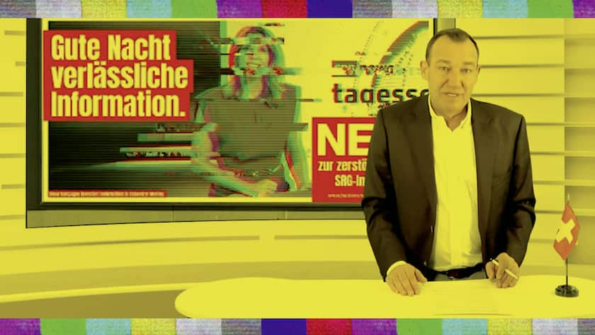 SRG-Gegner Thomas Matter präsentiert sich wie ein «Tagesschau»-Sprecher bei SRF.