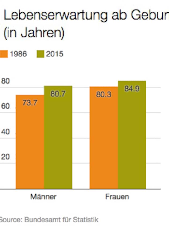 Wenn man den Prognosen glauben darf, wird die Lebenserwartung noch weiter ansteigen – allerdings flacht die Steigung ab. Es ist also nicht zu erwarten, dass die Lebenserwartung bald bei 100 Jahren liegt. Das wäre auch nicht im Sinne der AHV, die schon jetzt einer dringenden Reform bedarf – unter anderem, weil die Menschen immer älter werden.