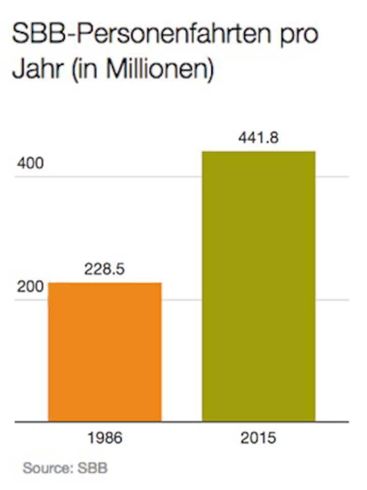 Erinnern Sie sich? Bis 2005 gab es in den SBB-Zügen Raucherabteile. Scheint eine Ewigkeit her zu sein. Deren Abschaffung hat den Erfolg der Bundesbahnen trotz anfänglichen Protesten nicht gebremst, im Gegenteil: die Passagierzahlen nehmen jährlich zu. In den letzten 30 Jahren haben sich die Personenfahrten nahezu verdoppelt. Eine Personenfahrt entspricht der Reise eines Passagiers vom Ausgangs- zum Endpunkt.