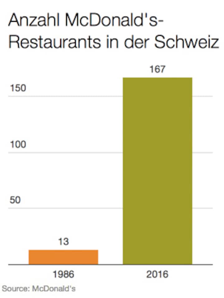 1976 eröffnete die erste Schweizer McDonald's-Filiale in Genf, weitere Restaurants folgten landesweit. McDonald's sei ein «kulinarischer Affront gegenüber jedem halbwegs kultivierten Mitteleuropäer», enervierte sich der damalige SP-Gemeinderat und spätere Bundesrat Moritz Leuenberger. 1982 gab es sogar einen Brandanschlag auf eine Zürcher McDonald's-Filiale.