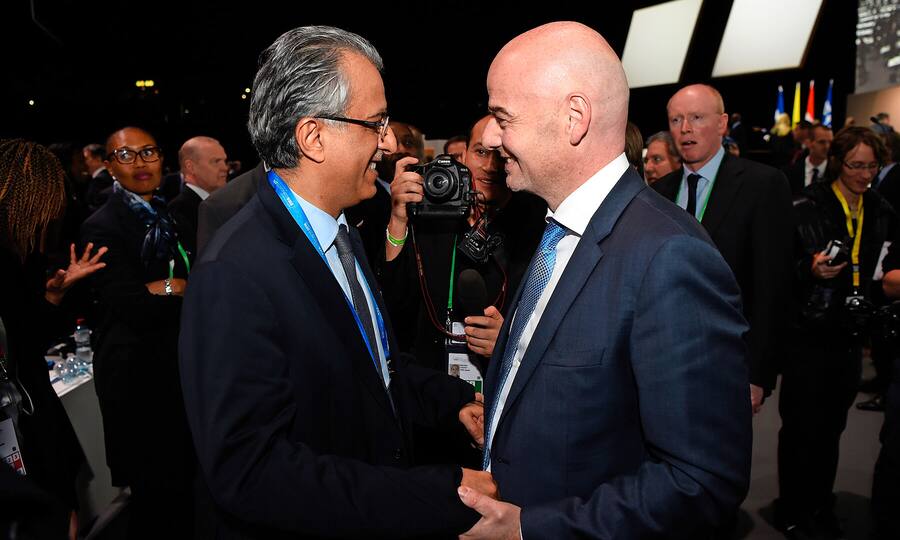 Der Scheich: Im Februar unterlag Salman Al Chalifa (links) bei der Fifa-Präsidentschaftswahl knapp Gianni Infantino. Ein neuer Anlauf für den Posten ist denkbar, wobei Al Chalifa die Bekanntschaft zu Ali Syed in die Quere käme.