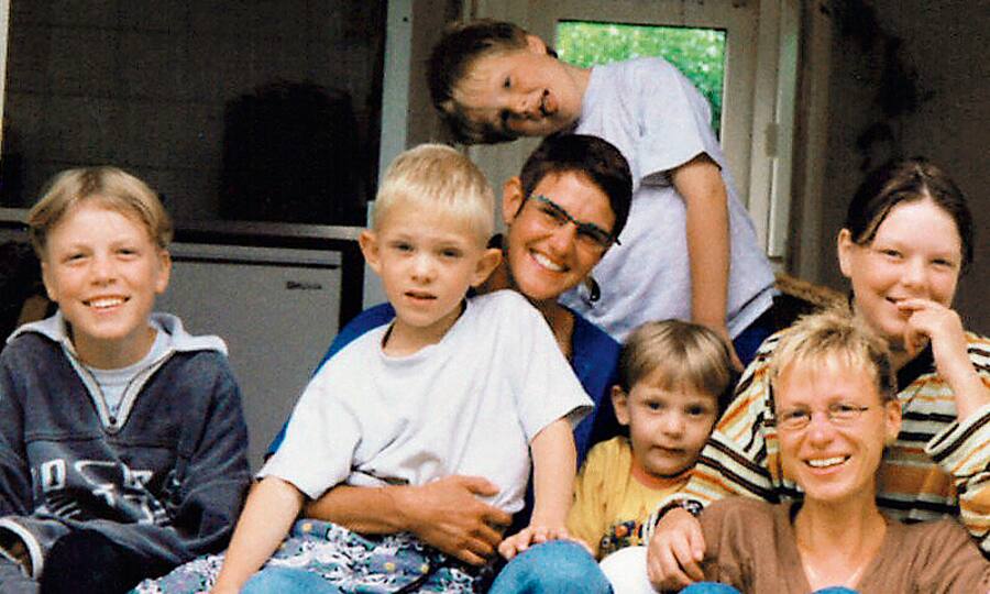 Blick ins Familienalbum (von links): Benjamin, Nicola, Mama Marianne Schneider, Jeroen, Laura, Mami Marianne van Vulpen und Gea 1997