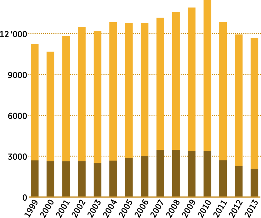 Seit 1999 wird die Zahl der Strafurteile gegen Minderjährige erhoben. Nach einer Spitze im Jahr 2010 sinkt die Anzahl straffälliger Jugendlicher stetig.
