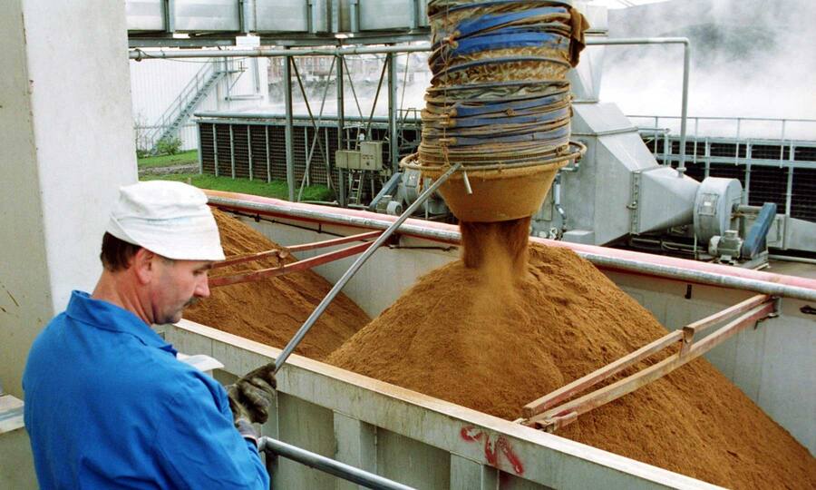 Vernichtet: Tonnen an Tiermehl auf dem Weg in den Ofen.