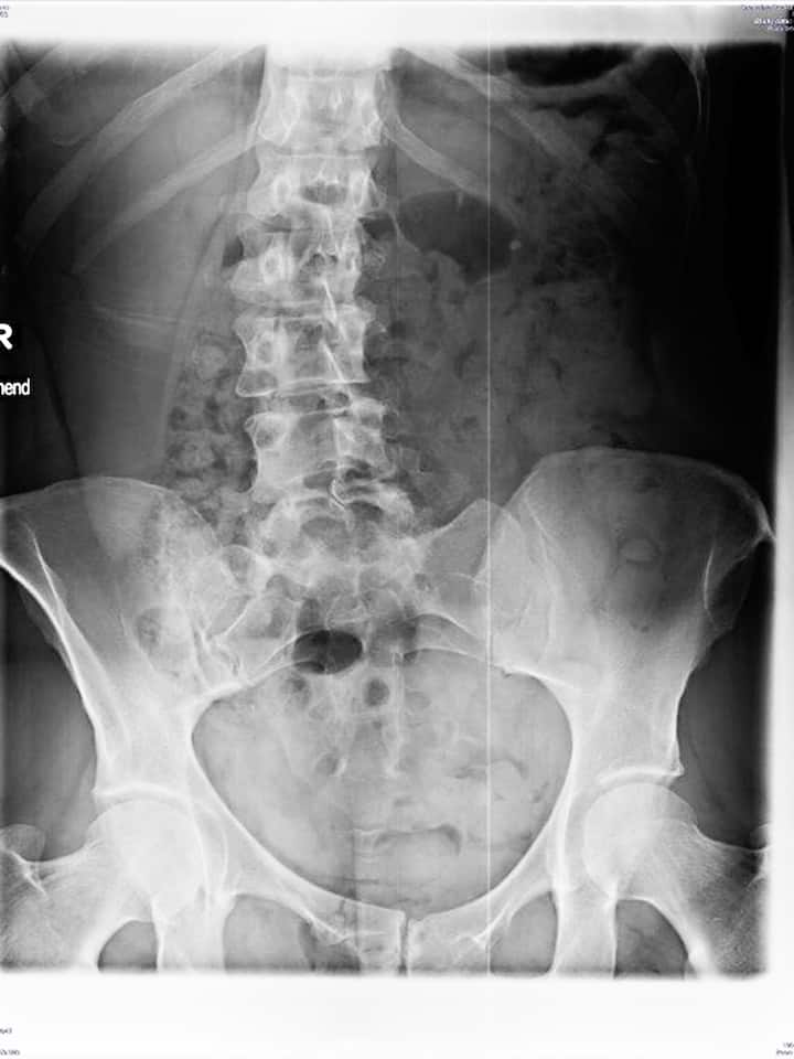 Die Röntgenbilder, die der 48-Jährige von meiner Wirbelsäule anfertigte, bringen Erstaunliches zutage: Ich habe eine Krümmung in der Lendenwirbelsäule («Skoliose»), einen zweigespaltenen Wirbelbogen am untersten Lendenwirbelgelenk («Spina bifida occulta»), und der linke Querfortsatz des untersten Lendenwirbels ist möglicherweise – das Röntgenbild zeigt es nicht eindeutig – mit dem Kreuzbein verwachsen («Sakralisation»). Zwischen «L4» und «L5», also dem vierten und fünften Lendenwirbel, ist der Abstand etwas weniger breit als bei den übrigen Gelenken. Die Bandscheibe dazwischen scheint belastet zu sein. Das könnte meine sporadischen Kreuzschmerzen erklären.