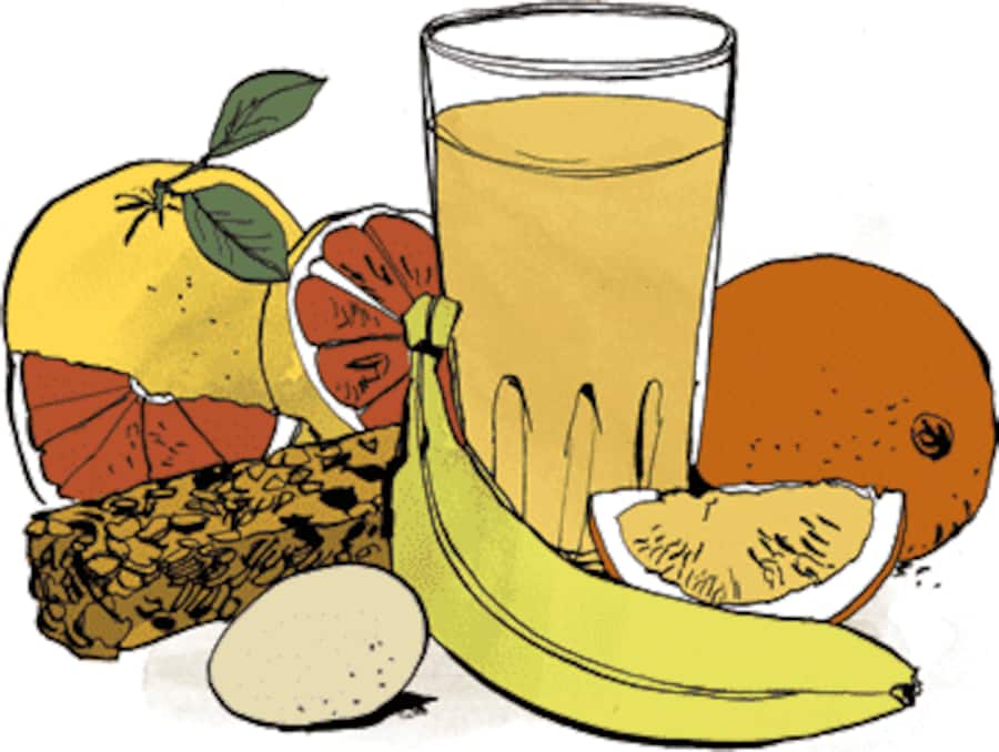 Nach dem Sport ist es gut, eine Kleinigkeit zu essen, auch wenn man kein grosses Hungergefühl verspürt. Ideal ist eine Banane, ein hartes Ei, ein Riegel oder ein Fruchtsaft.
