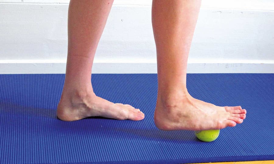 1. Fuss auf einen Igelball oder Tennisball stellen