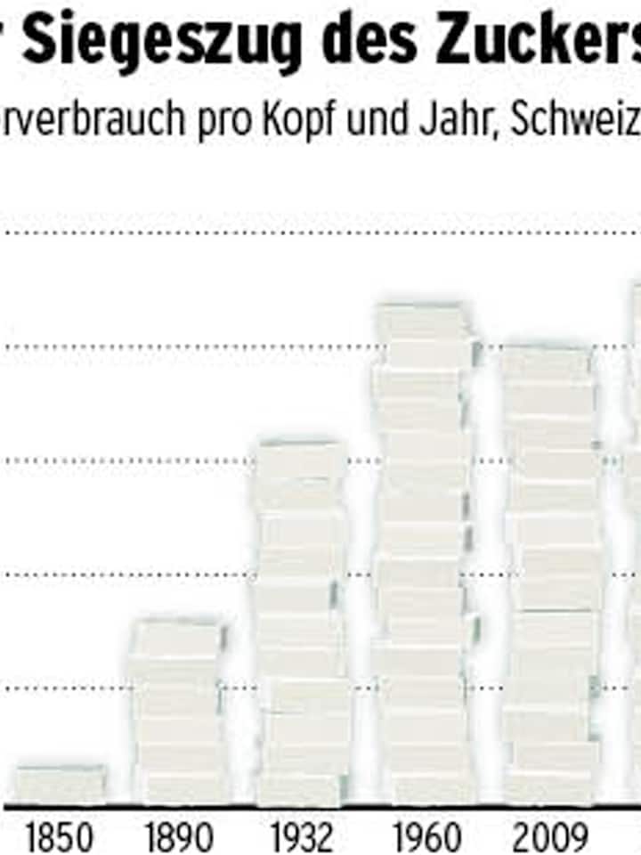Doch der Zuckerkonsum nimmt stetig zu. Innerhalb von fünf Jahren hat er sich hierzulande um fünf Prozent gesteigert, besagt der «Sechste schweizerische Ernährungsbericht» von 2012. Wir nehmen so viel Zucker zu uns, weil er nicht nur in Süssigkeiten steckt – sondern auch in salzigen Speisen, in den meisten Fertigprodukten und in Getränken.