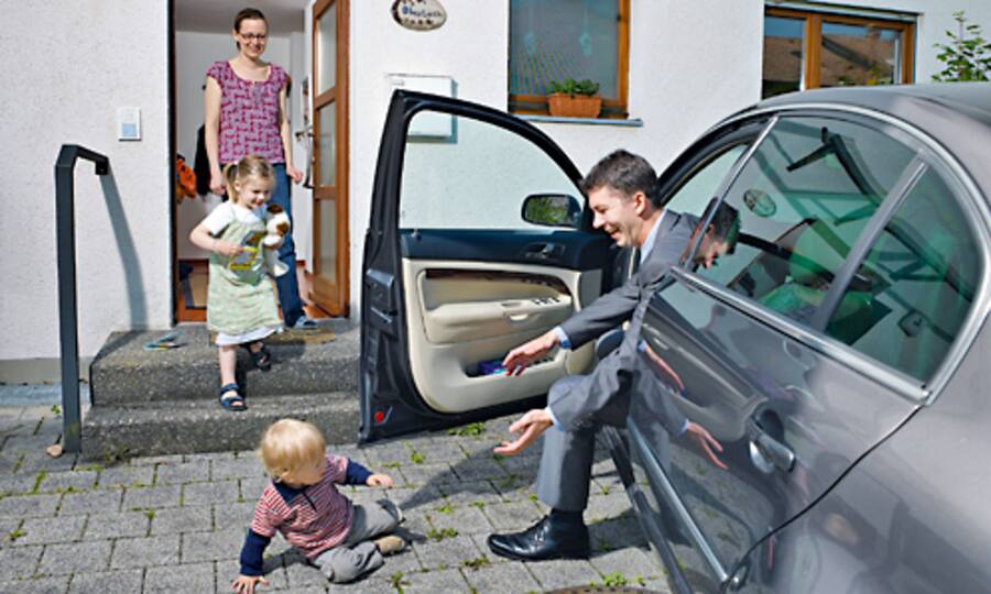 Die Familie lebt im deutschen Schopfheim bei Lörrach. Oliver Oberlach aber arbeitet in Zürich. Und so sitzt der IT-Berater täglich rund zweieinhalb bis drei Stunden im Auto. Kommt es unterwegs auch noch zu Staus, empfindet Oberlach die Situation als besonders belastend. «Da wünscht man sich schon einen kürzeren Arbeitsweg.» Für Termine beim Zahnarzt oder in der Autogarage muss er meist einen halben Tag freinehmen. Zu Hause fehlt er besonders während turbulenteren Phasen: «Wenn die Kinder krank sind oder sonst viel los ist, bleibt alles an mir hängen», sagt Birgit Oberlach.