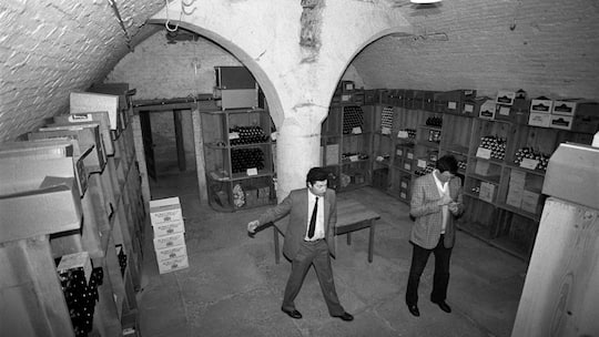 Eine Aufnahme von 1986, die einen Blick in den Weinkeller erhaschen lässt.