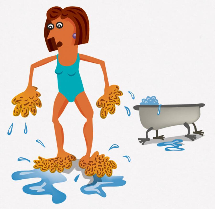 An Fingern und Füssen ist die Haut dicker als am Rest unseres Körpers. Immerhin wird sie an diesen Stellen Belastungen ausgesetzt, von denen zartere Stellen verschont bleiben. Dickere Haut saugt aber auch mehr Wasser auf, wenn wir zu lange im Schwimmbecken planschen. Sie wird dadurch noch dicker und etwas heller und quillt irgendwann so sehr auf, dass sich Runzeln bilden. Zum Glück glättet sich die Haut beim Trocknen schnell wieder.