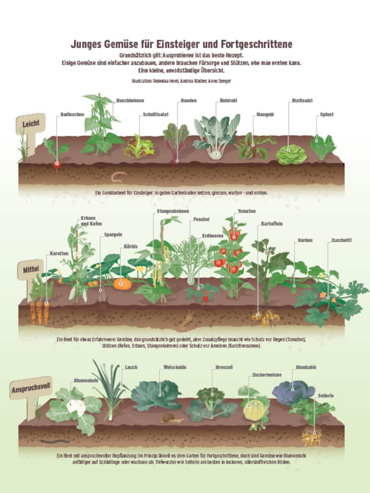 - Beim ersten Anpflanzen mit «sicheren» Einsteigerpflanzen starten. Dann weitere Gemüse dazunehmen.