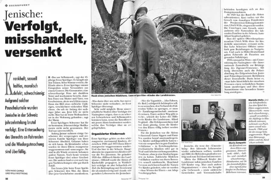 Sie waren «Zigeuner» und «Vaganten». Unfähig, «zielbewusst zu denken und zu handeln», wie die «Neue Zürcher Zeitung» noch 1963 schrieb. «Typische Charaktereigenschaften sind das unsorgfältige Umgehen mit Hab und Gut, ihre Schlampigkeit und ihr Leichtsinn.» Jenische waren «fahrendes Volk» und lebten damit eine Kultur, die in der Schweiz fehl am Platz war. Am besten also, ihr ein Ende zu bereiten. Das «Hilfswerk für die Kinder der Landstrasse», der Stiftung Pro Juventute zugehörig, kümmerte sich darum. Rund 600 jenische Kinder entriss sie ab 1926 ihren Familien, um sie sesshaft zu machen, ab 1927 mit Bundesgeldern. Verfrachtete sie in Heime, Anstalten, Pflegefamilien. Verdingte sie. Gab sie zur Adoption frei. Unterband jeglichen Kontakt zu den Eltern.