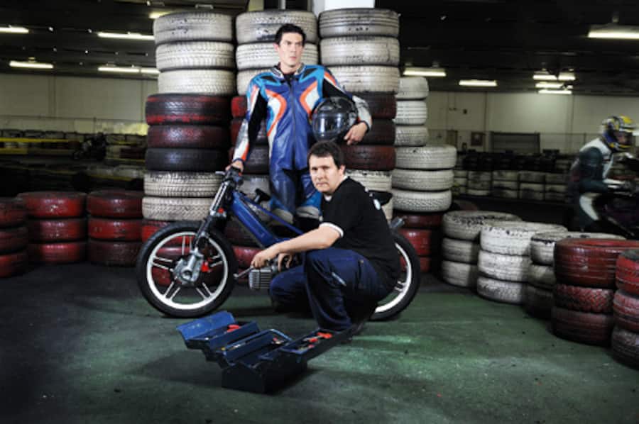 Im Race-Inn in Roggwil BE, wo die Rennen stattfinden, erreicht man Spitzengeschwindigkeiten von über 70 Kilometern pro Stunde. Das klingt nicht nach viel, aber die Beschleunigung ist irre. Ich bin mal geradeaus in die Streckenbegrenzung gedonnert. Die Sanitäter sagten mir, ich solle aufhören, aber ich bin trotzdem weitergefahren. Danach konnte ich mich kaum mehr bewegen, hatte eine Gehirnerschütterung und war überall blau. Stürze kommen halt vor, aber es passiert selten was Ernstes, vor allem verdrehte Knie und so. Einen haben sie mal mit dem Helikopter geholt. Nach einem Sturz war ihm einer in den Rücken gefahren. Er machte dann weiter, und es erwischte ihn wieder. Der hatte einfach Pech. Irgendwann wurde es ihm zu viel, und er hat aufgehört. Ohne bleibende Schäden.