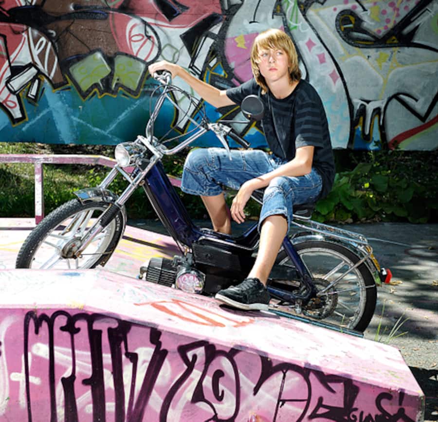 Ich habe schon mit 14 Jahren an Mofas herumgeschraubt. Leider hat unser Keller keine Aussentür, deshalb mussten wir das Mofa immer durchs Haus tragen. Unsere Mutter mochte das nicht, sie mag es immer noch nicht – weil es dann in der Stube nach Benzin riecht. Trotzdem haben uns die Eltern machen lassen. Jugendliche könnten viel dümmere Sachen machen, als an Motoren herumzuschrauben. Man lernt ja auch was dabei.