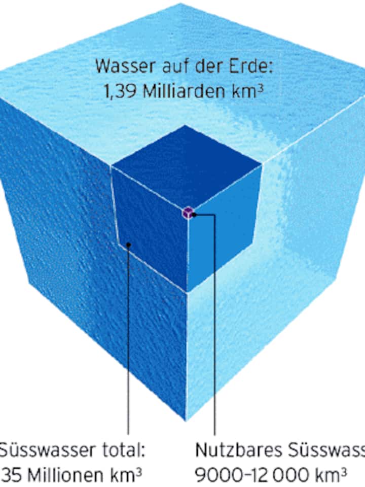 Das Salzwasser der Meere macht gut 96 Prozent des Wassers auf unserem Planeten aus. Ein grosser Teil des Süsswassers ist gefroren, nutzbar ist nur ein kleiner Teil.