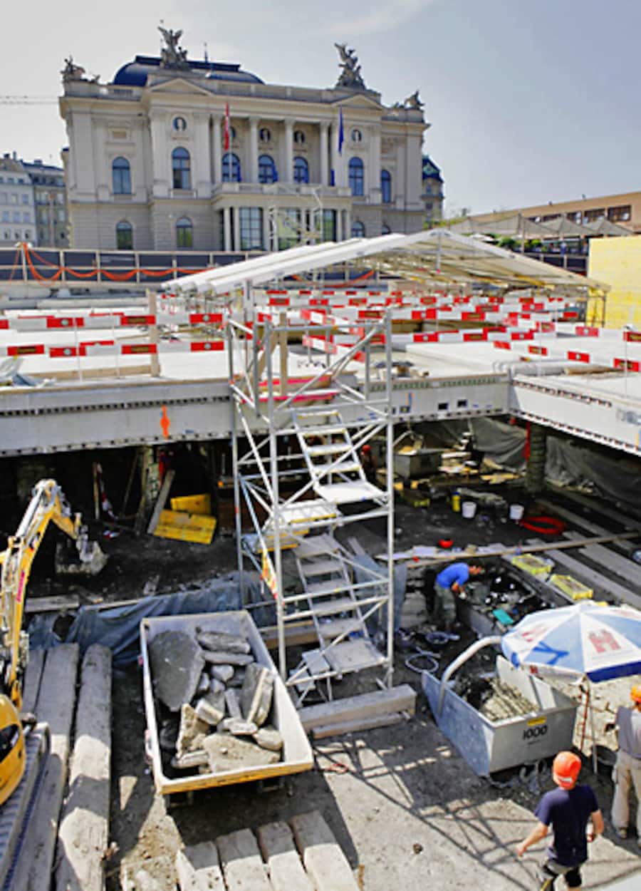 Bei Sondierungen auf der Baustelle für das neue Zürcher Parkhaus Opéra sind im März 2010 Reste von Pfahlbausiedlungen zum Vorschein gekommen: wertvolle, bis zu 5000 Jahre alte Kulturschichten von internationaler Bedeutung. Ein neunmonatiger Baustopp gibt den Archäologen Zeit für eine Notgrabung.