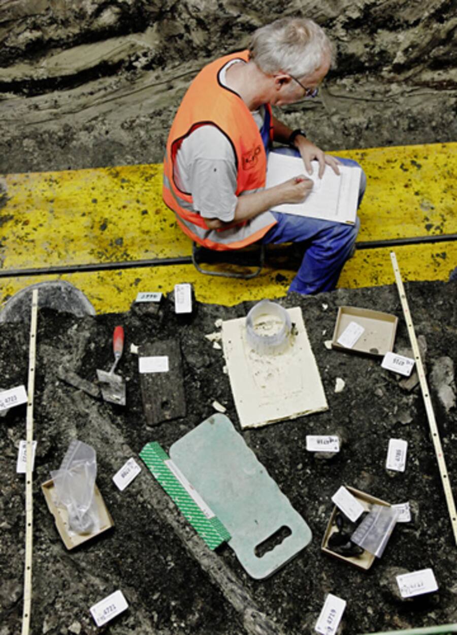 Das Ziel der Grabung ist nicht nur, in kurzer Zeit so viel wie möglich aus der Erde zu holen, sondern genau solche Zusammenhänge herzustellen − und zwar an Ort und Stelle. «Was man auf dem Platz nicht versteht, versteht man später erst recht nicht mehr. Und Proben kann man ja keine mehr nehmen, wenn alles weg ist.» Sprich: Wo die Siedlungsreste waren, erstrecken sich später unterirdische Parkplätze.