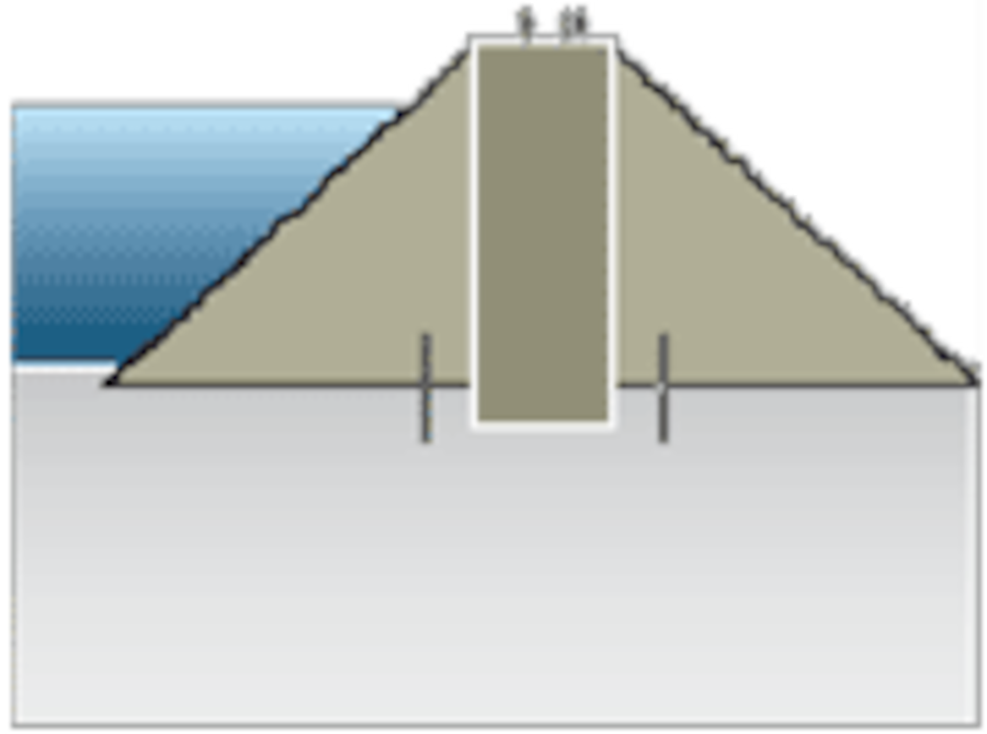 Nur das Zentrum eines solchen Damms ist wasserdicht. Eine grosse Aufschüttung hält die Mauer stabil.