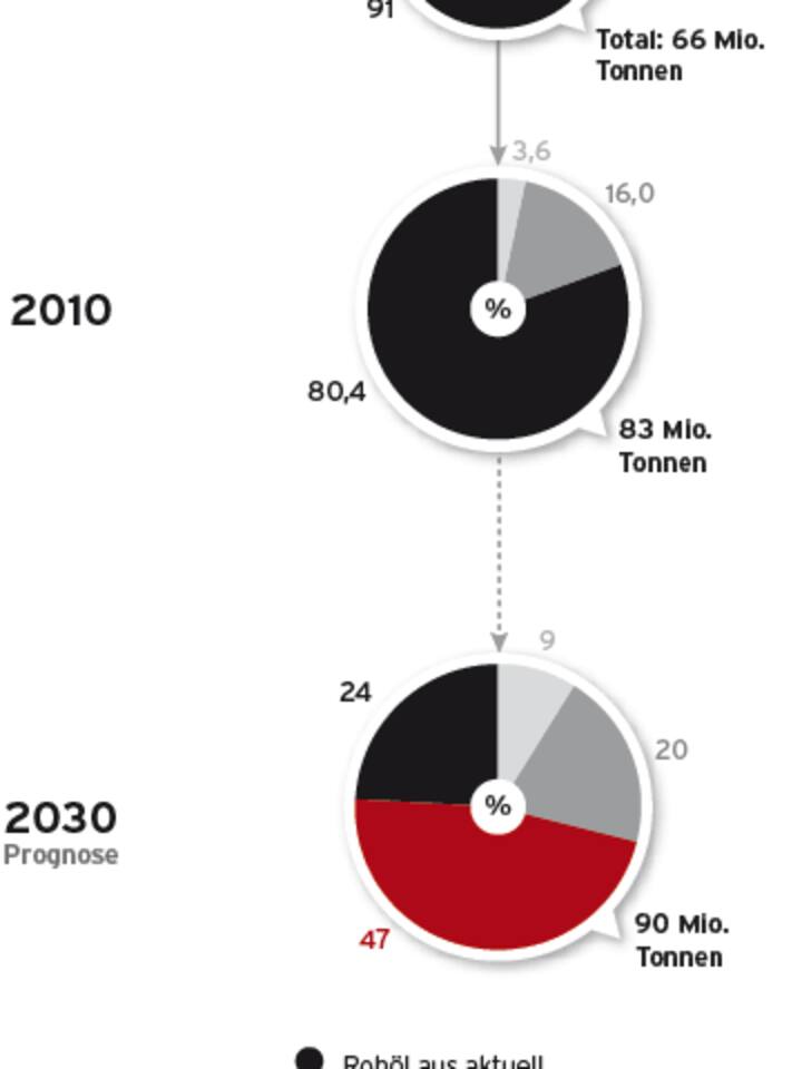 Folglich wird Erdöl gemäss IEA die Energiequelle Nummer eins bleiben und im Jahr 2030 noch immer 28 Prozent der Nachfrage decken. Die grünen Energien hingegen werden es in 20 Jahren erst auf einen Anteil von zwölf Prozent gebracht haben. Im optimistischsten Szenario, das davon ausgeht, dass die Staaten ein globales CO2-Regime durchsetzen, könnten sie maximal 20 Prozent erreichen.