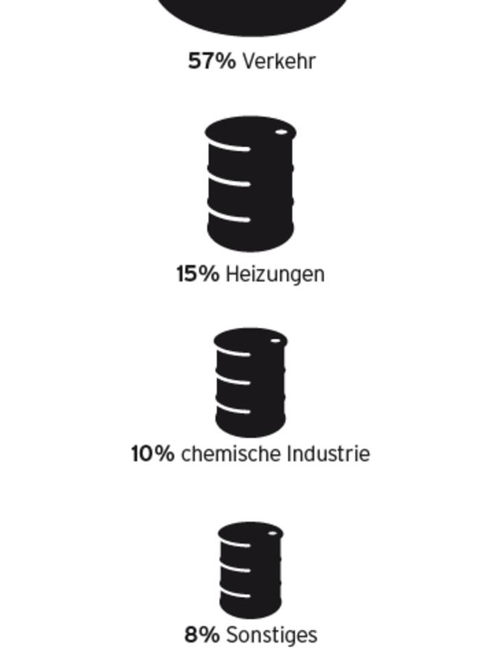 «Das Öl ist der Lebensnerv der Zivilisation, ohne den sie nicht bestehen könnte», sagte der ägyptische Präsident Gamal Abdel Nasser in den sechziger Jahren. 50 Jahre später hängt die Welt immer noch am Ölhahn wie ein Fixer an der Nadel. 14 Milliarden Liter verbrauchen wir jeden Tag – so viel wie nie zuvor. Öl ist vor Kohle und Erdgas die Energiequelle Nummer eins und deckt 33 Prozent des weltweiten Energiebedarfs ab. Die erneuerbaren Energien, Wasserkraft und Agrotreibstoffe miteingerechnet, machen acht Prozent aus (siehe nachfolgende Grafik «Weltweiter Energieverbrauch»).