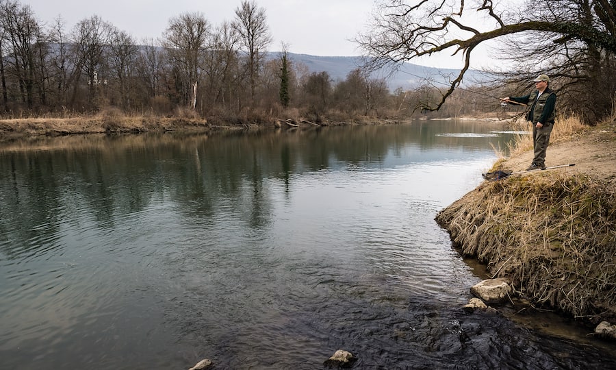 Aber dazu kommt es heute Abend nicht. Gefangene Fische: null. Investierte Regenwürmer: zwei. Enttäuscht? «Nein», versichert Stefan und sagt dann den Satz, den alle Fischer sagen: «Ich fische vor allem, weil ich gern in der Natur bin.» Hier sehe man immer wieder Biber, mal schwimme eine Entenfamilie vorbei, und die Entenjungen musterten den Zapfen; und jedes Mal sehe die Umgebung ein wenig anders aus. Auch in die Ferien nimmt er immer eine Angel mit, nach Schottland, Kambodscha oder Slowenien. «Die Soča dort ist so schön, da kriegst du feuchte Augen.»