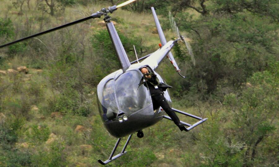 Mit Helikoptern dieses Typs machen Wilderer Jagd auf die Nashörner (nachgestellte Szene aus der Fernsehdokumentation «Saving Rhino Phila»).