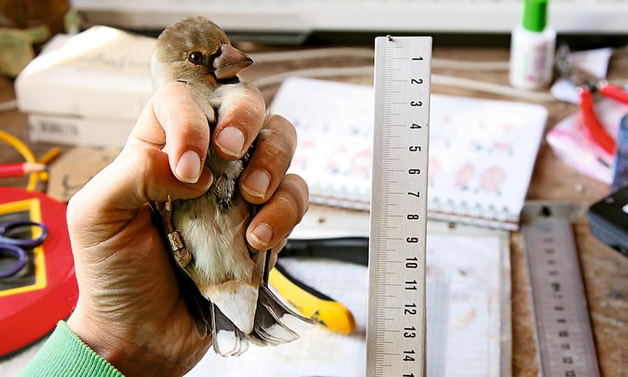 Jeder Vogel wird mit einer Nummer beringt. So kann man die Reisen der Vögel verfolgen und beobachten, wie sich der herbstliche Zug verändert. Es gibt Vogelarten, die fliegen heute später los als noch vor ein paar Jahrzehnten. Andere fliegen weniger weit. Wieder andere überqueren die Alpen gar nicht mehr, weil sie im Winter auch bei uns Nahrung finden.
