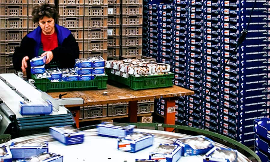 Die Hektik ist spürbar, die sechs Mitarbeiter in der Spedition sind konzentriert bei der Sache, führen eine letzte Qualitätskontrolle durch. Pilze, die den Anforderungen nicht genügen, werden aussortiert. «Jeder Pilz, der bei uns rausgeht, muss perfekt sein», betont van Gruijthuijsen. Die zweite Qualität landet in Konserven und Industrieprodukten. Ein Zettel mit dem Namen der Pflückerin weist jede Schachtel aus. So lässt sich zurückverfolgen, wer wie gut gearbeitet hat. Nach der Kontrolle werden die Schachteln mit dem entsprechenden Etikett beklebt, und die exakte Anzahl Kartons wird zum Verladen bereitgestellt.