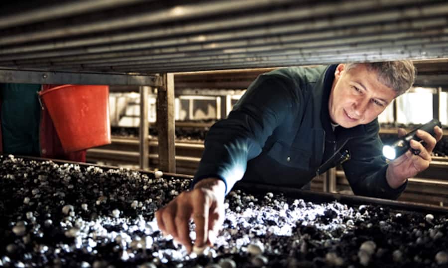 Harrie van Gruijthuijsen prüft die Fruchtkörper, die innerhalb eines Tages ihr Gewicht verdoppeln können.