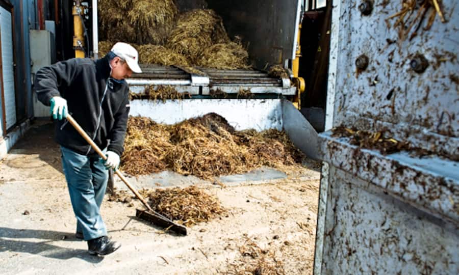 «Der Kompost ist die Grundlage, das A und O der Pilzzucht», sagt Betriebsleiter van Gruijthuijsen, der in Gummistiefeln an einem meterhoch aufgeschichteten Miststock vorbeistapft – im selben rasanten Tempo, wie er spricht. «Es ist wie beim Kochen: Wer gut essen will, darf nur beste Zutaten verwenden.» «Küche» nennt er denn auch die Anlage, in der Kompost mit Wasser vermengt, pasteurisiert und fermentiert wird. Auf diese Weise sein eigenes Substrat, den Nährboden für die Pilze, zu produzieren, hat Vorteile: «Wir wissen, was wir da zusammenbrauen, wir haben die Kontrolle über die Qualität.»