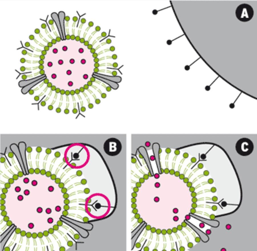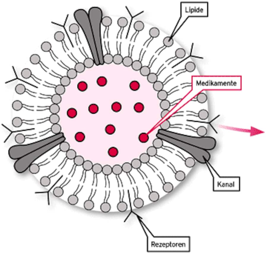 B Der Container ist mit Rezeptoren ausgestattet, die das Zielorgan, zum Beispiel die Leber, erkennen und dort andocken.